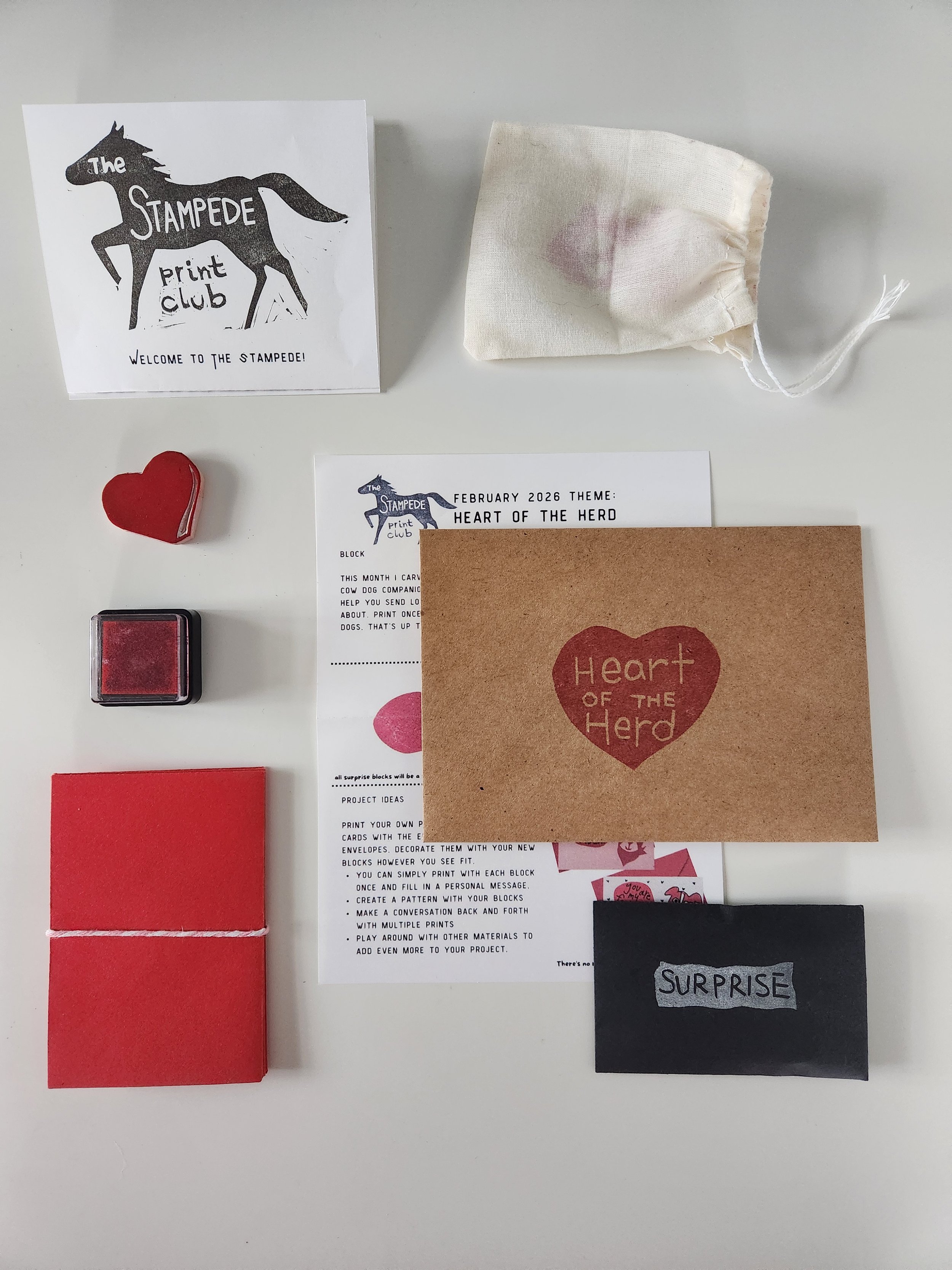 Think of the Stampede Print Club as a monthly dose of low-pressure creativity — every month, you’ll receive a new hand-carved block print kit delivered straight to you. But this isn’t just another subscription box — it’s a creative ritual.